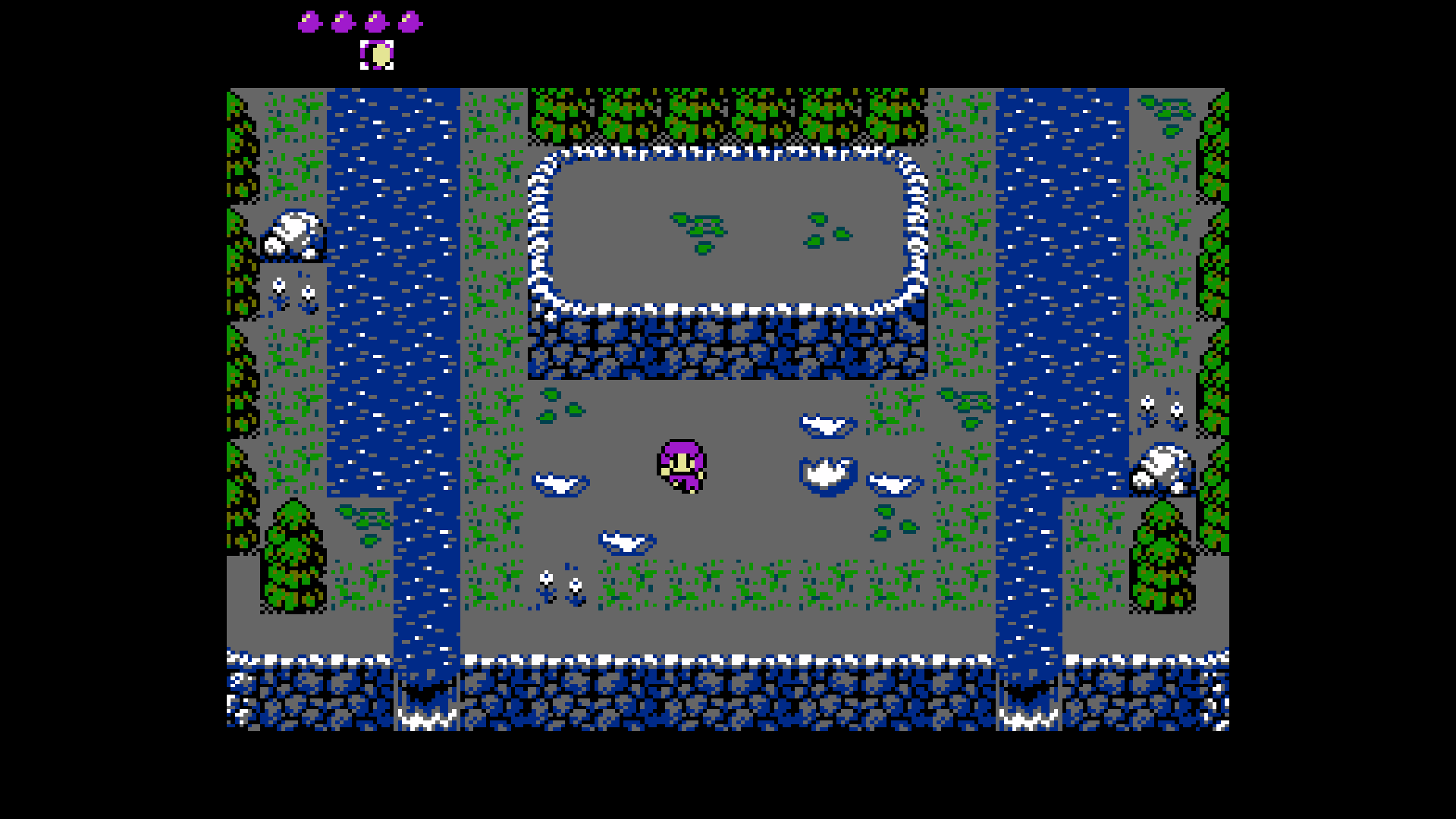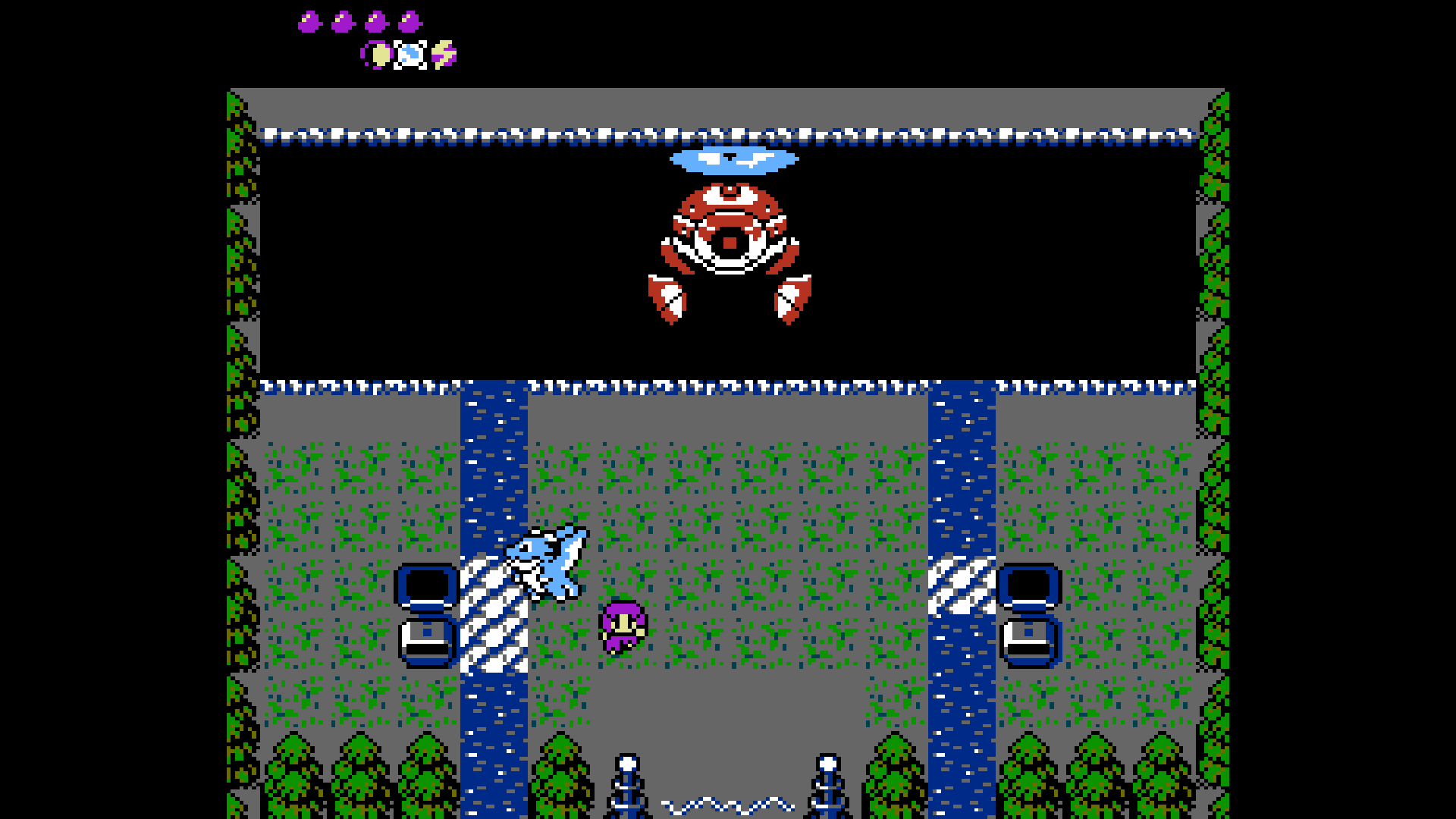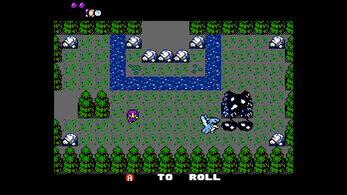 As The Girl, players can walk using the D-Pad and dodge-roll using the A BUTTON. When in the rolling animation, players can avoid damage from enemies and projectiles. Players can also use the roll action to ram into some contextual on-screen objects to solve light puzzles.